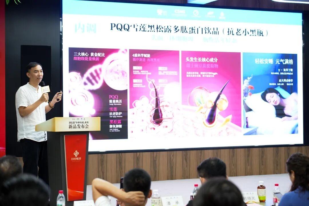 發(fā)布會上,源生堂推出了兩款備受矚目的新品——PQQ抗老小黑瓶和HSA頭皮賦活液。這兩款產(chǎn)品以“外養(yǎng)內(nèi)調(diào)1+12”為核心,構(gòu)建起立體化抗衰體系。